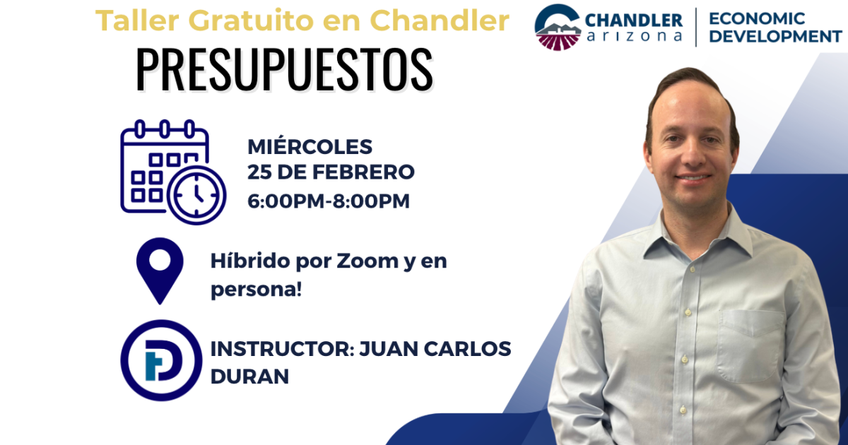 The City of Chandler Economic Development Division has partnered with the DAS Foundation to host a series of free workshops in Spanish. The workshops will be held in person or via Zoom.
