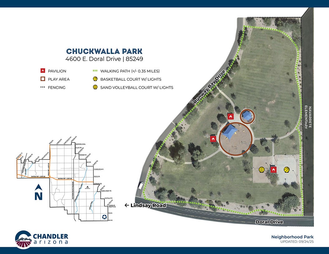 A classic neighborhood park that’s a great place to take a break, have a family picnic or let the kids play. At Chuckwalla Park, you’ll find a basketball court, sand volleyball court, playground, and three pavilions. With well-lit courts, you can keep the games going even after dusk. A walk along its .35 miles of walking paths will also help you forget the hustle and bustle that surrounds you.