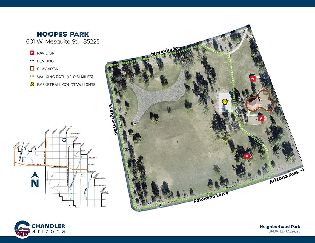 Look no further than Hoopes park for your next day out and about. Enjoy a spacious play structure with tons of slides, bridges, and climbing features. Run or walk on the 0.51 miles of walking trail around the large open field. Play a quick game of basketball on the court or play a game of soccer out on the field. There is plenty of things to enjoy here at Hoopes Park!