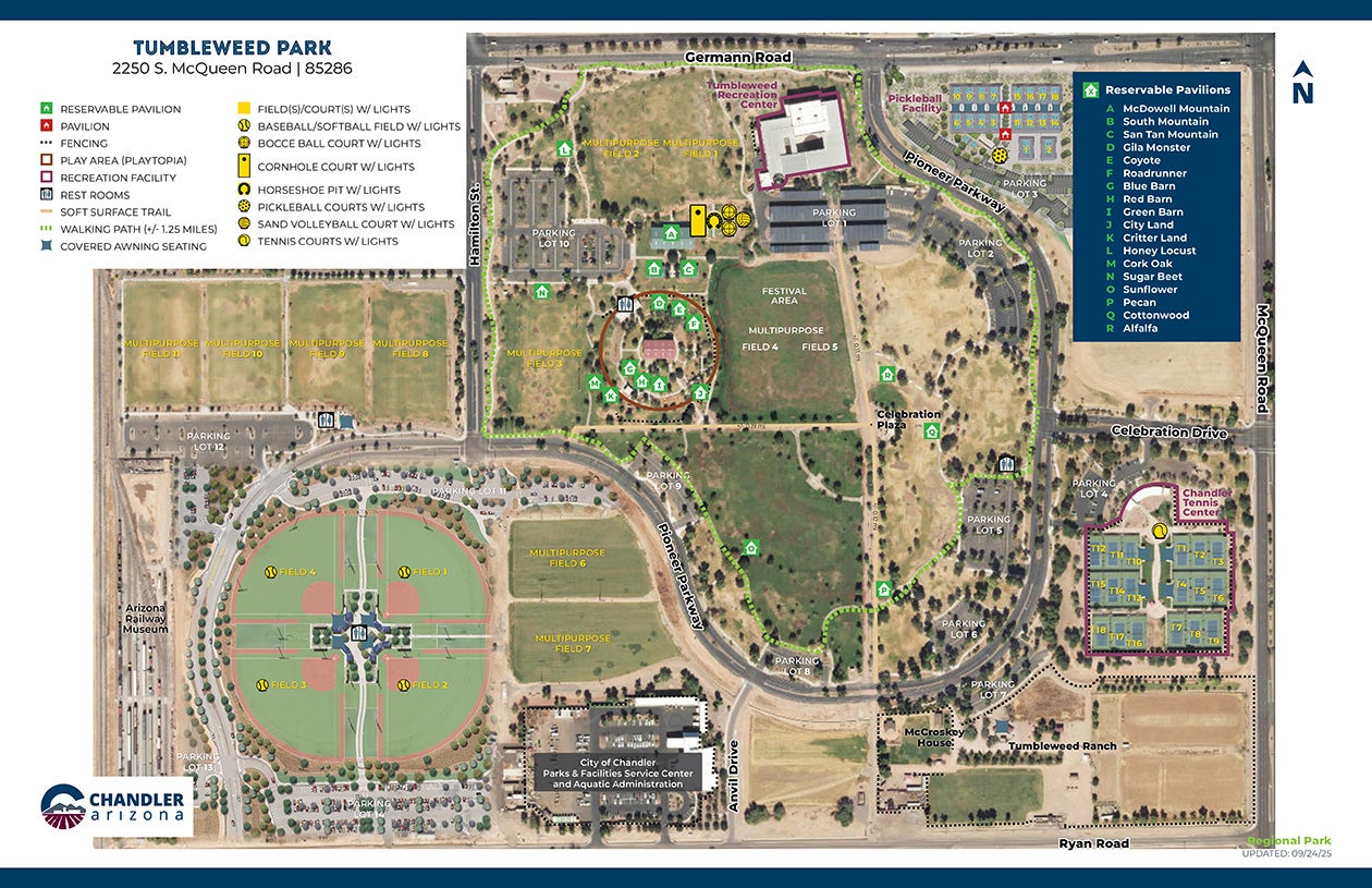 Playtopia! is a 2.5-acre playground and picnic section of Tumbleweed Park. It features several play zones with themes based on Chandler's heritage. Playtopia! is an ideal place for endless imaginative play and attracts families from all over town.