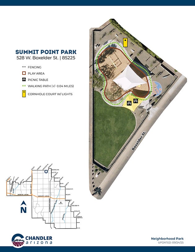 Summit Point Park is a small neighborhood park with so much to do! Enjoy the playground, workout equipment, cornhole, and a small field where you can enjoy a picnic or let the kids run and play. Enjoy a beautiful day outdoors at Summit Point Park.