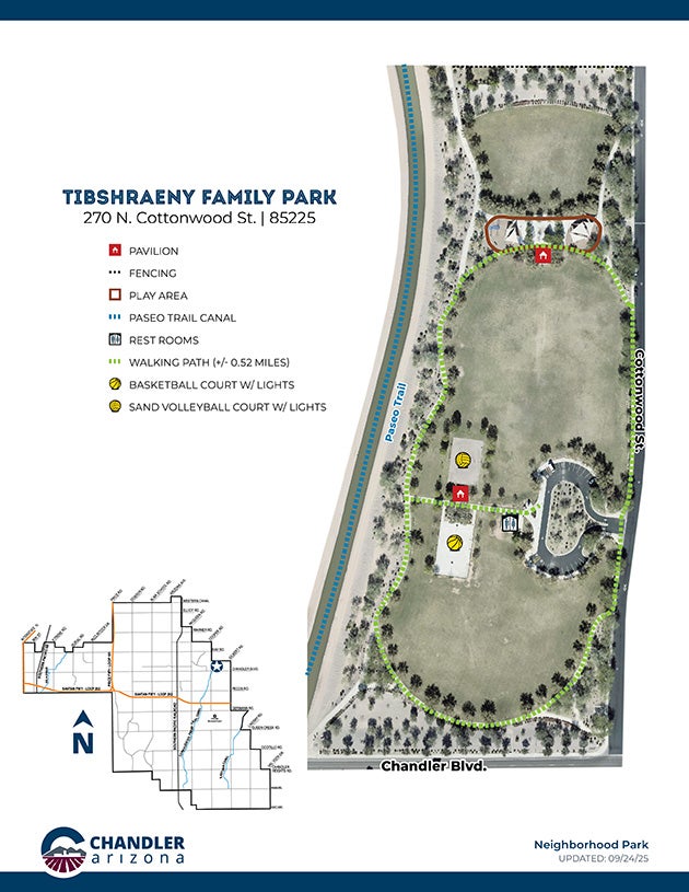 Tibshraeny family park is spacious park in Chandler dedicated to former Mayor Jay Tibshraeny. Mayor Tibshraeny served seven terms as Mayor of Chandler and spent a total of 24 years on the City Council.
